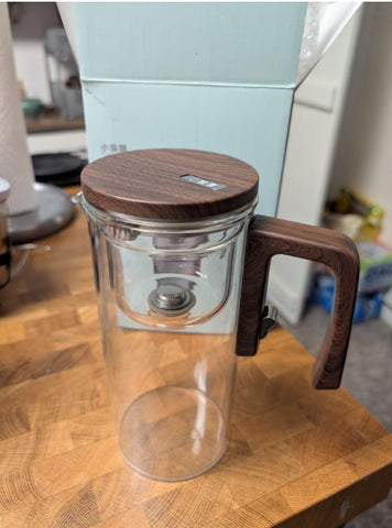 Pones el té en la taza superior para prepararlo, y cuando se acabe el temporizador, gira la palanca y se drena en la jarra inferior. Es brillante y hace una taza de té absolutamente perfecta. Está muy bien hecho y es una maceta muy atractiva. La mejor parte es que las partes que entran en contacto con el té son aptas para lavavajillas.